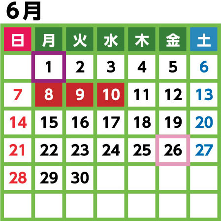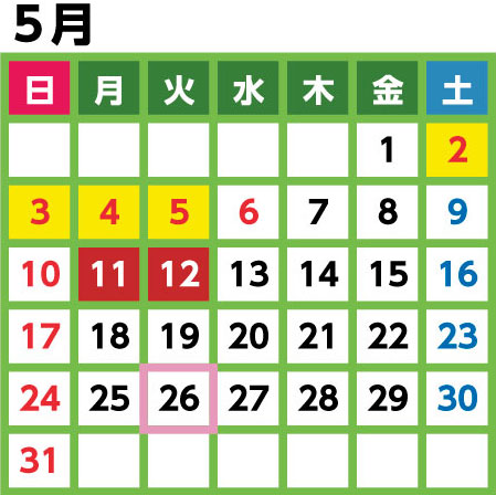 (26日が休館日となる5/26は5/25に、2/26は2/28にそれぞれ変更となります)
